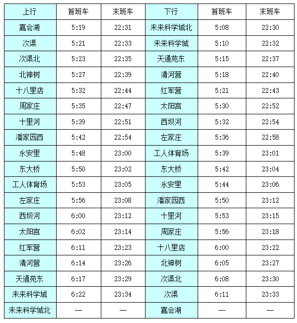 地铁17号线各站首末班车时间表具体如下: